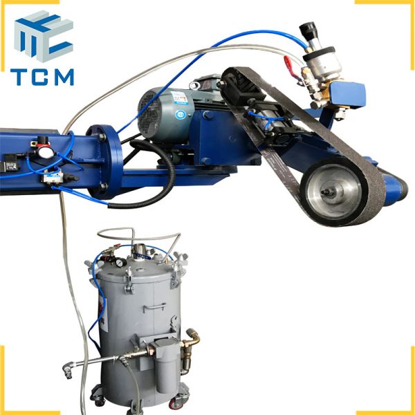 In order to get mirror finishing steel surface,solid or liquid wax are needed during final buffing step,TCM automatic grinding machine could equip with liquid wax spray gun device on automatic polishing heads,which could add liquid wax in automatic way.contact us More details on liquid wax system,ODM is available.